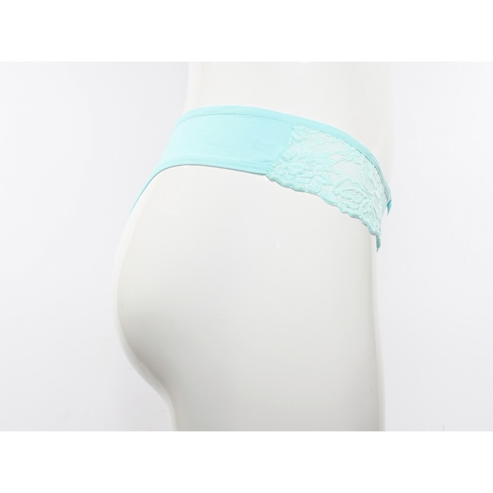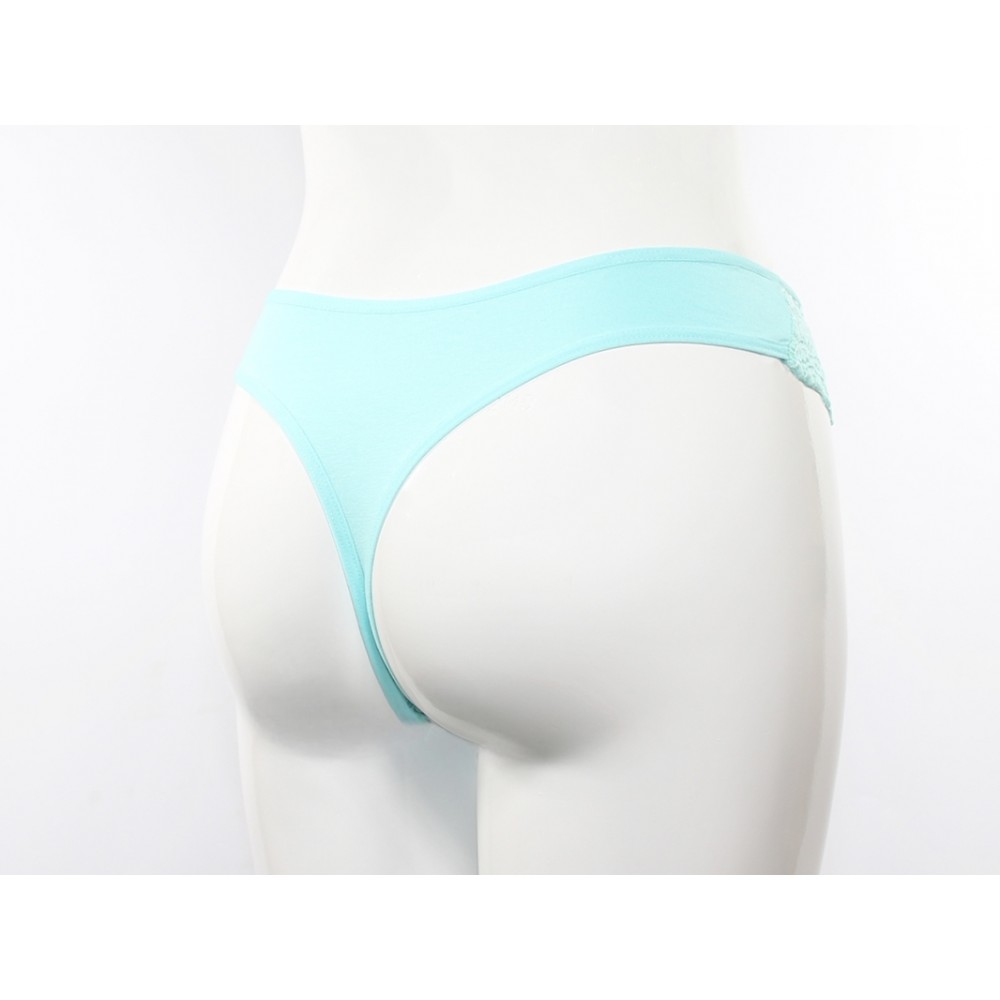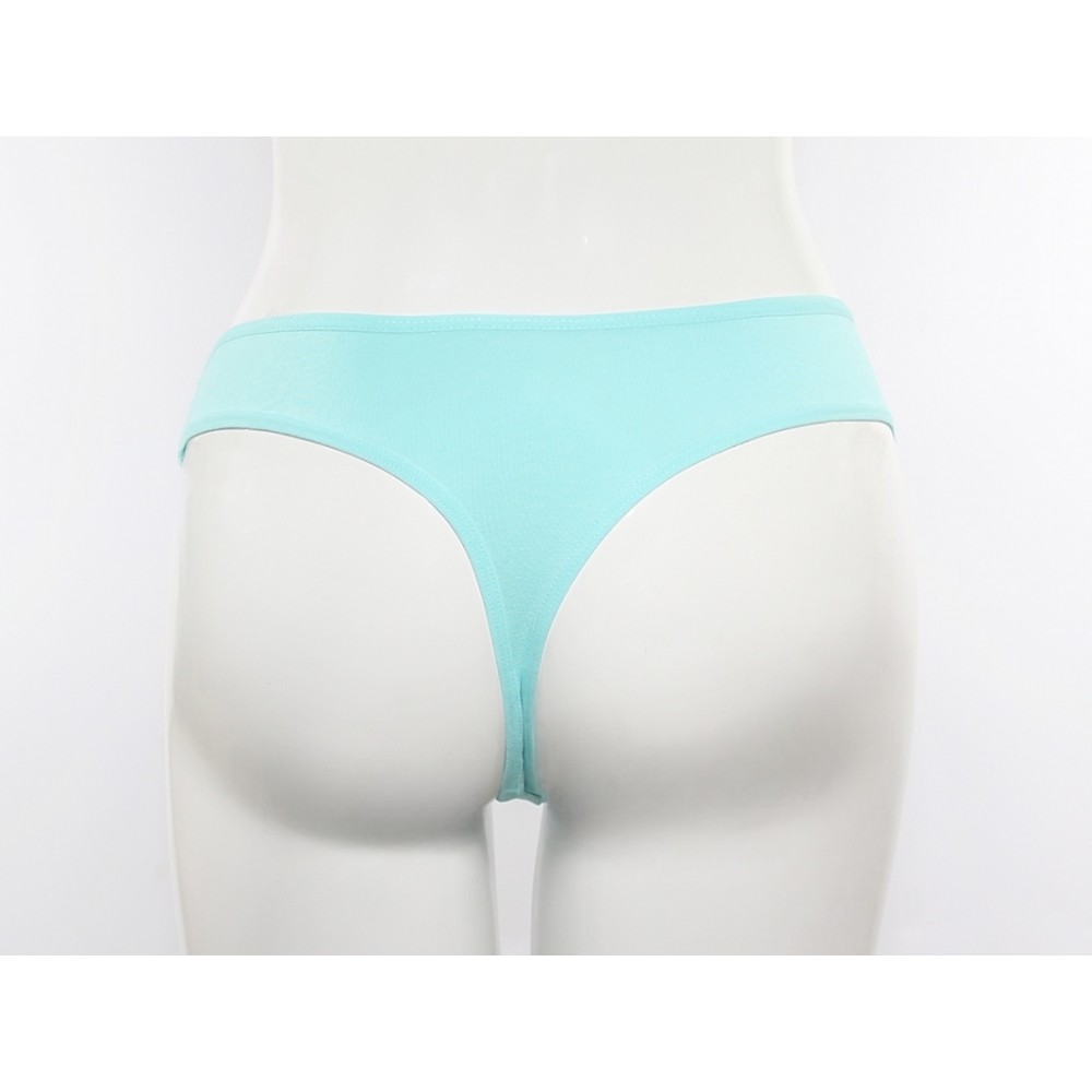 Классические трусы танга однотонного бирюзового цвета, с кружевами и с бантиком. Они прекрасно подходят для повседневной носки, практически незаметны под одеждой и гармонично дополняют их форму. Сделаны из натурального хлопка, из трикотажного полотна, что позволяет коже дышать.