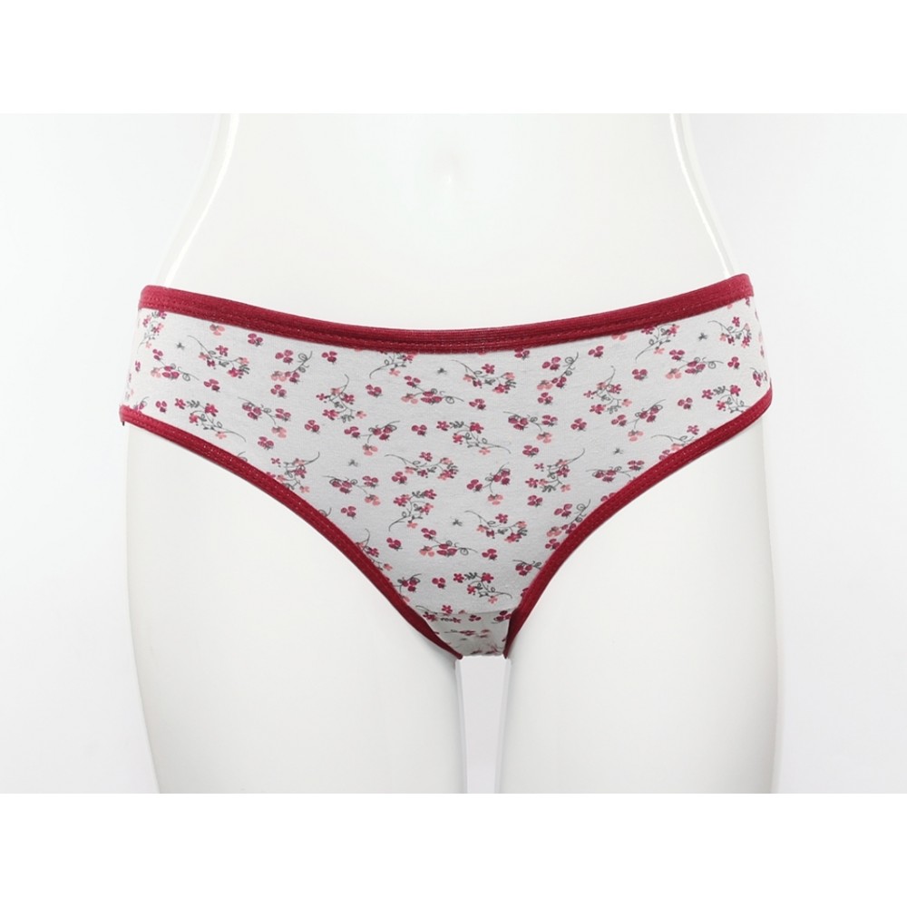 Красивые серые трусы слипы, с цветочным принтом (темно-красные цветы с серо-зелеными лепестками), с эластичной резинкой темно-красного цвета станут отличным решением для повседневной носки. Они прекрасно подойдут для занятий спортом, танцев, зала, гимнастики и будут выглядеть сексуально и эротично на любой фигуре. Эти слипы сделаны из хлопка с добавлением 5% лайкры. Они хорошо пропускают воздух и влагу, позволяя коже дышать. Размерный ряд: L.
