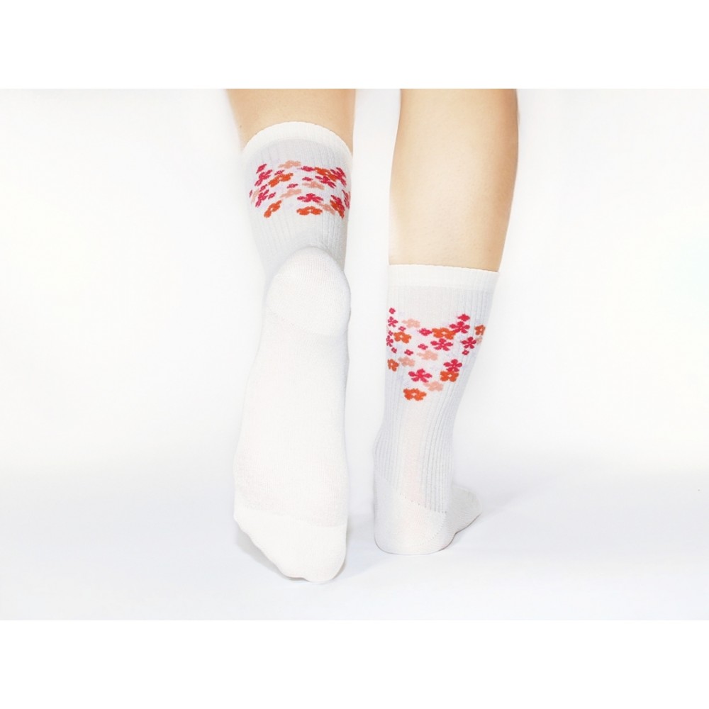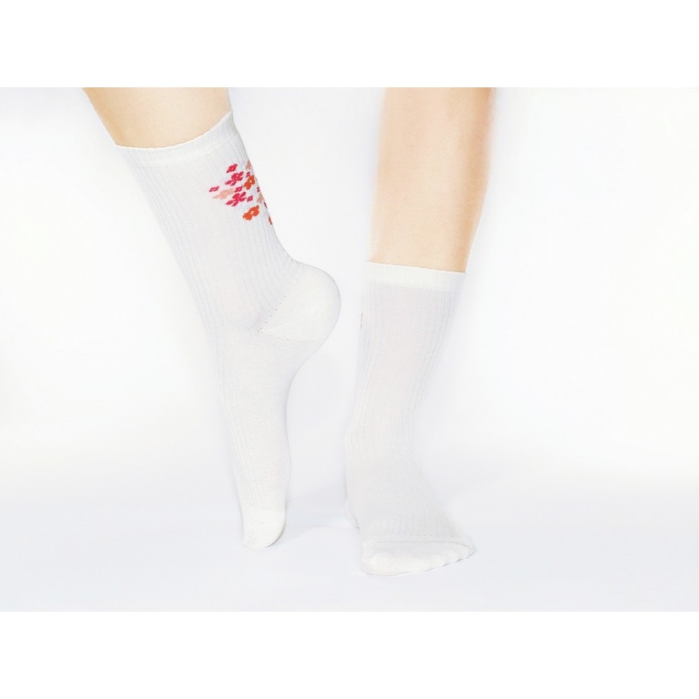 Бамбуковые белые носки с цветочным узором гармонично дополнят ваш повседневный образ и подчеркнут вашу индивидуальность своим оригинальным дизайном. Это носки с высокой посадкой и премиум качества. Они мягкие, эластичные и комфортные. За счет бамбукового волокна носки очень прочные и износостойкие. Хорошо переносят многократные стирки, не линяют, не садятся. Ноги в них отлично дышат. Одно из главных свойств бамбука - это гипоаллергенность, благодаря которому он также подходит людям с чувствительной кожей. Размер изделия единый 36-41.