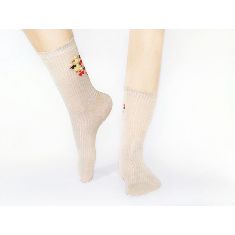 Бамбуковые бежевые носки с цветочным узором гармонично дополнят ваш повседневный образ и подчеркнут вашу индивидуальность своим оригинальным дизайном. Это носки с высокой посадкой и премиум качества. Они мягкие, эластичные и комфортные. За счет бамбукового волокна носки очень прочные и износостойкие. Хорошо переносят многократные стирки, не линяют, не садятся. Ноги в них отлично дышат. Одно из главных свойств бамбука - это гипоаллергенность, благодаря которому он также подходит людям с чувствительной кожей. Размер изделия единый 36-41.