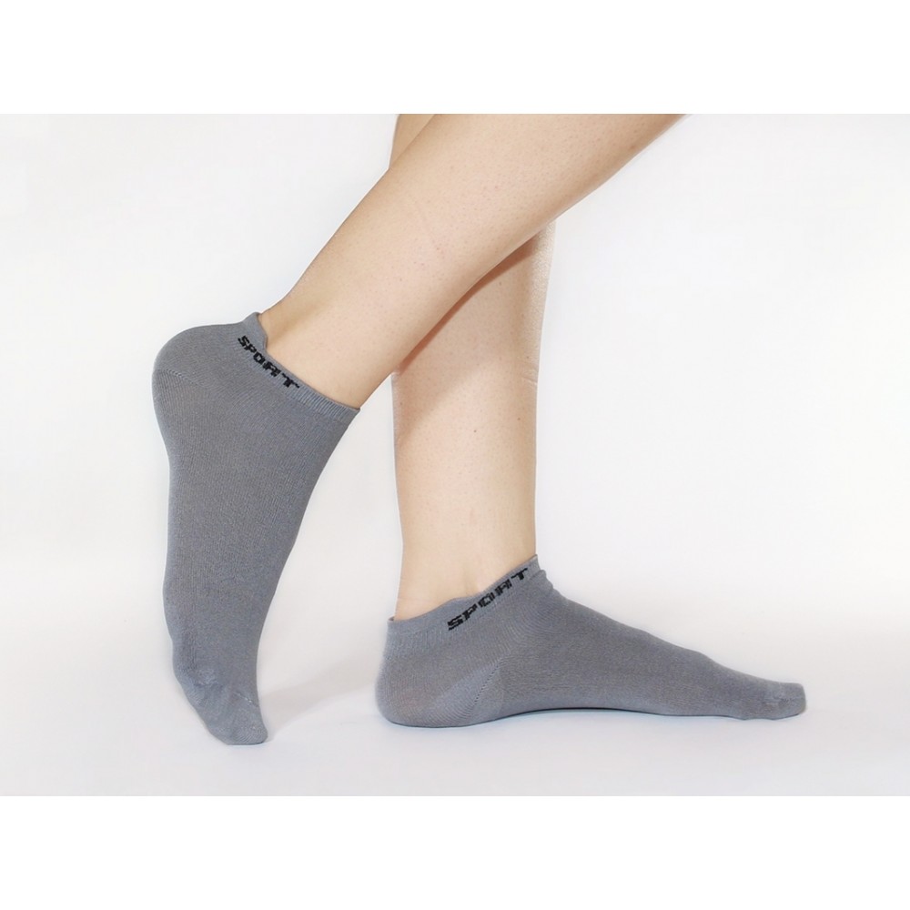 Эти короткие носки из микрофибры, серого цвета, с вышитой надписью SPORT, идеально подходят для занятий спортом или просто для повседневной носки.  Они обладают повышенной плотностью и мягкостью, что позволяет вашим ногам оставаться свежими и комфортными в любую погоду.