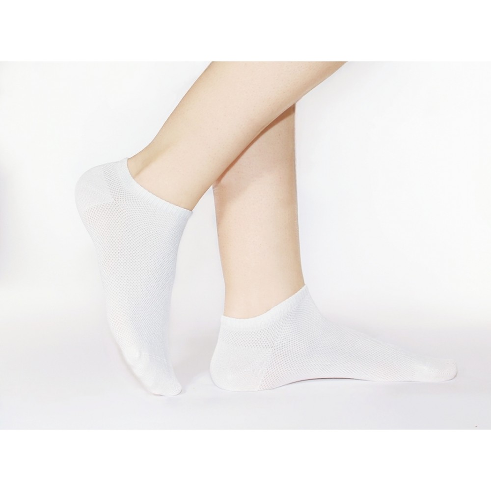 Эти короткие носки из микса бамбука и хлопка белого цвета прекрасно подходят для йоги, танцев, туризма, их можно носить как домашние, спортивные и праздничные. Эти сетчатые носки отлично впитывают влагу и пропускают воздух, а также препятствует образованию грибка за счет своих антибактериальных свойств.