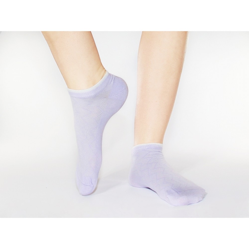 Эти короткие носки из микса бамбука и хлопка сиреневого цвета с зигзагообразными полосками прекрасно подходят для йоги, танцев, туризма, их можно носить как домашние, спортивные и праздничные. Эти сетчатые носки отлично впитывают влагу и пропускают воздух, а также препятствует образованию грибка за счет своих антибактериальных свойств.