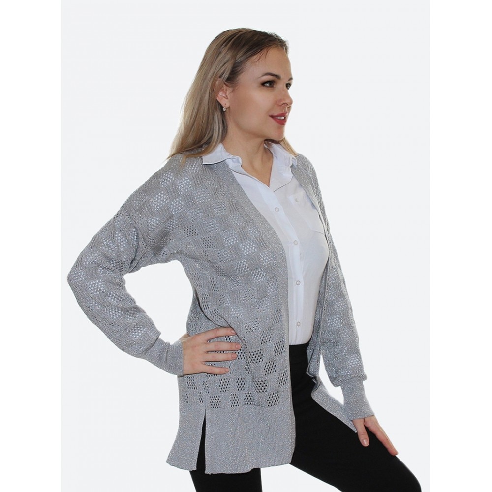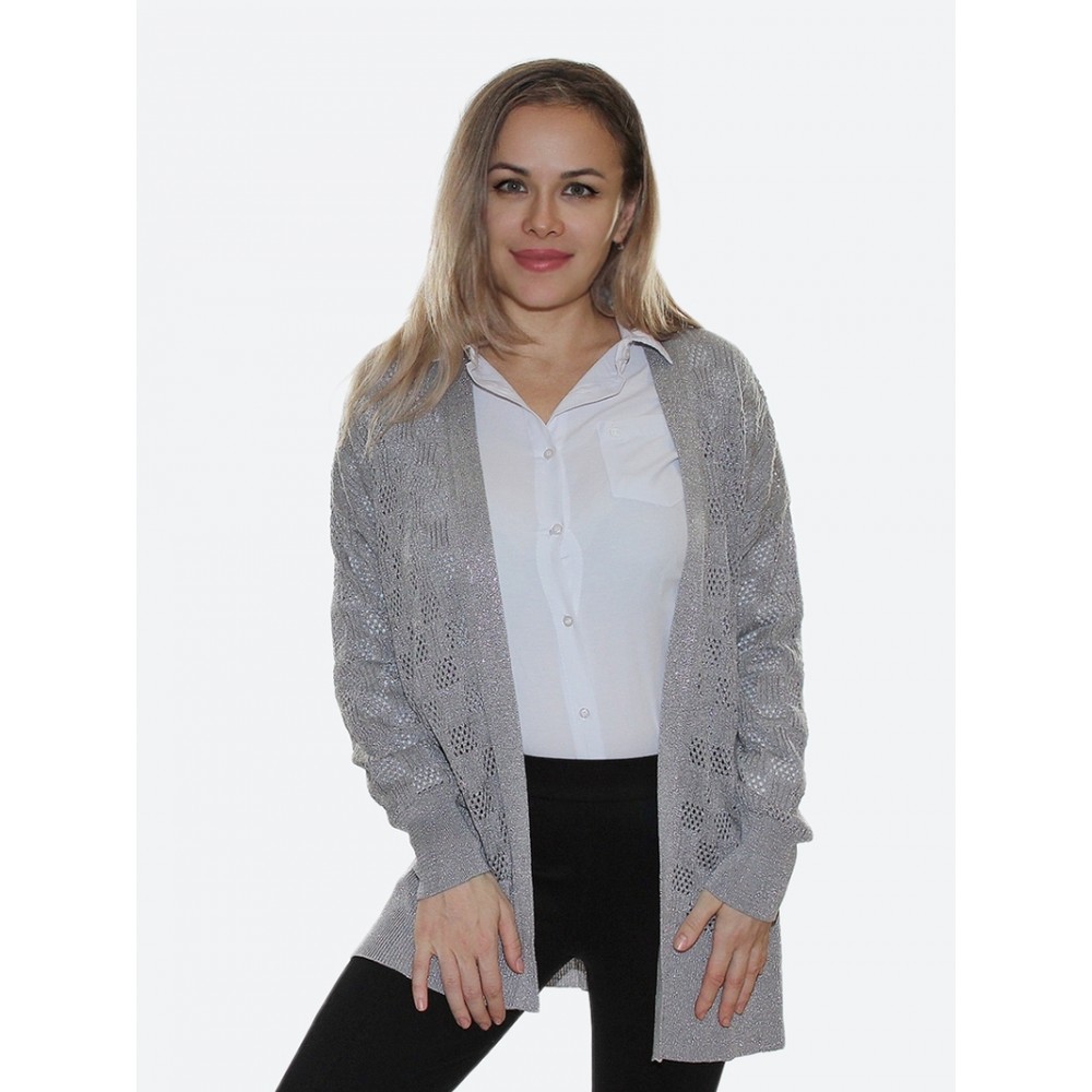 Этот женский кардиган сделан из микса акрила и вискозы с блестками. Он легко сочетается с любым цветом и стилем. Благодаря своей структуре он также позволяет коже "дышать", не создавая дискомфорта. Размер кофты единый - универсален для S, M или L.
