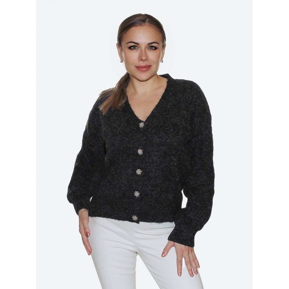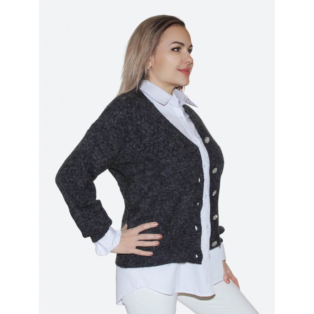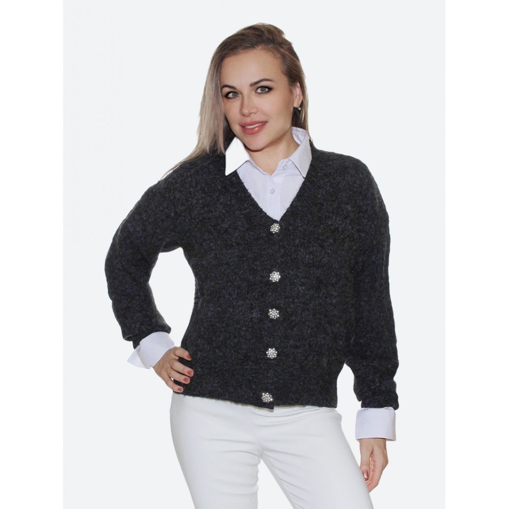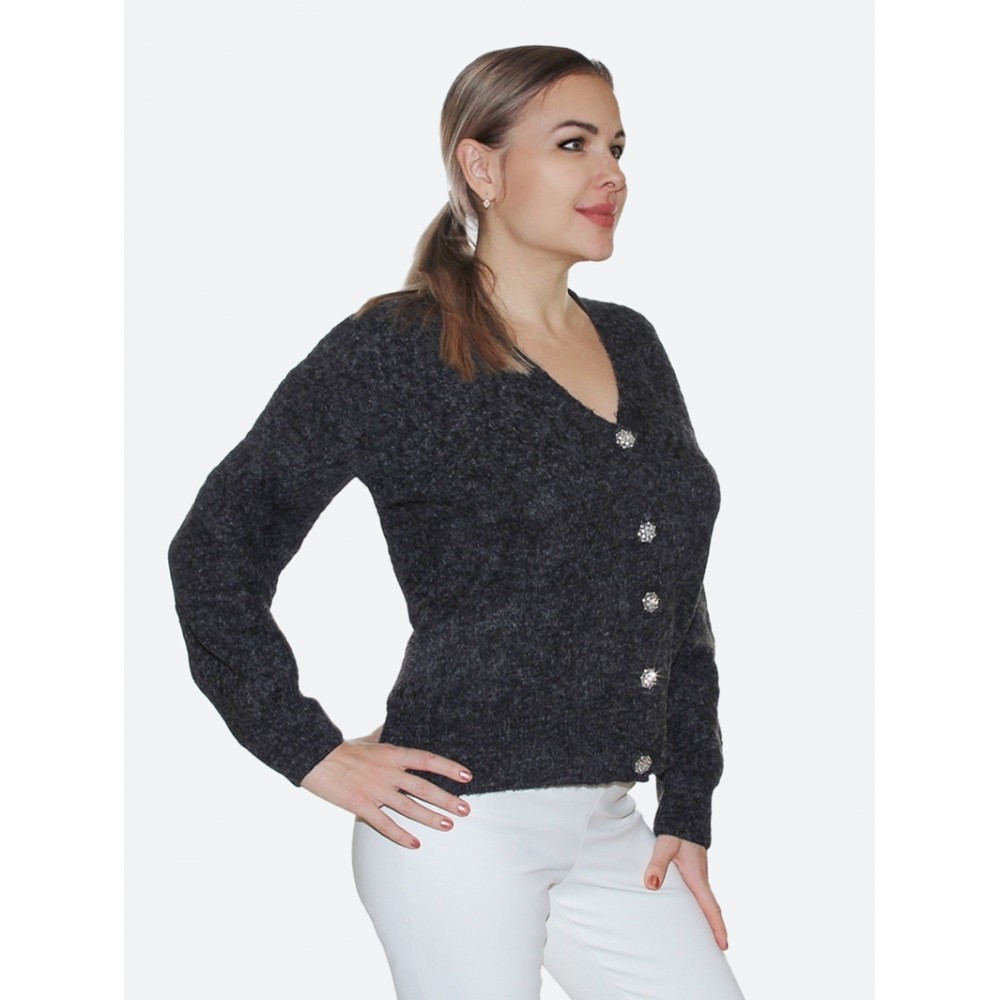 Наш женский кардиган базового серого цвета с V вырезом и с блестящими пуговицами - это универсальная кофта на любой случай. Его можно одевать, как на обнаженное тело, так и на водолазку, блузку или рубашку. Отлично будет выглядит как в расстегнутом виде, так и закрытым, и прекрасно держит форму.