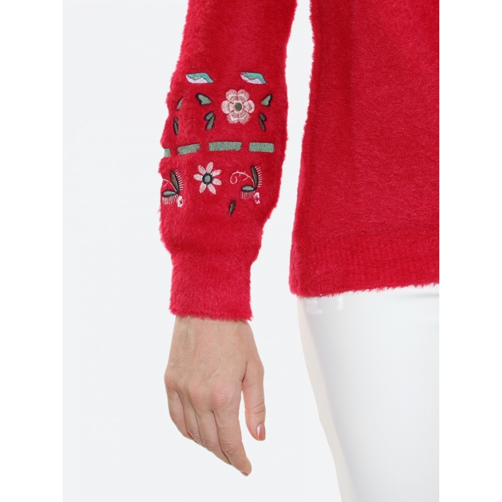 Красный джемпер с вышитым цветочным узором на рукаве не оставит вас равнодушным. Это легкая, мягкая и приятная на ощупь ткань из полиамида премиум качества. Единый размер подойдет для носителей S, M и L. Этот модный джемпер может стать незаменимой вещью для вашего повседневного или смарт-кэжуал образа.