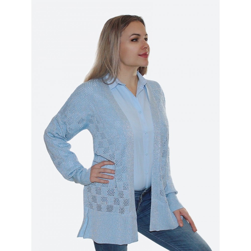 Этот женский кардиган сделан из микса акрила и вискозы с блестками. Он легко сочетается с любым цветом и стилем. Благодаря своей структуре он также позволяет коже "дышать", не создавая дискомфорта. Размер кофты единый - универсален для S, M или L.