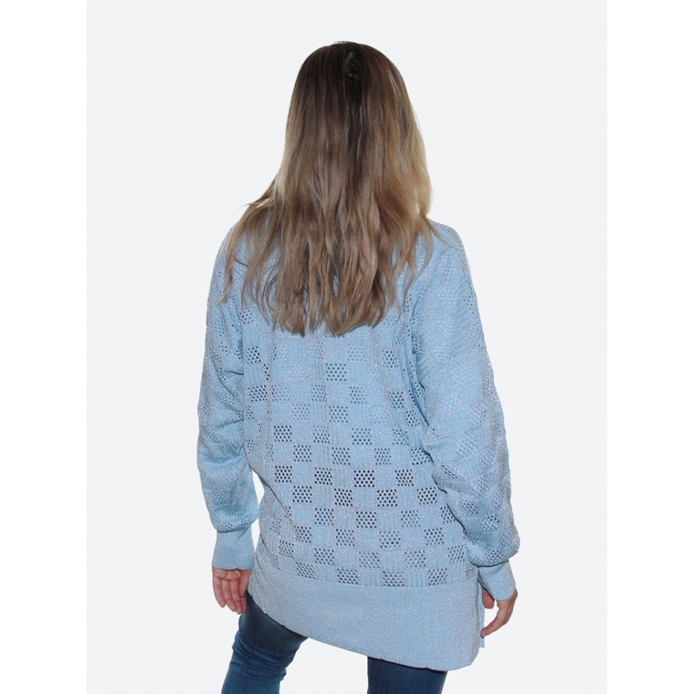 Легкий базовый кардиган в клетку в однотонном голубом цвете станет прекрасным выбором для любой женщины, которая стремится выглядеть невероятно притягательной и очаровательной. Органично подойдет под повседневный образ, но также и под деловой, если к нему добавить классическую  рубашку.