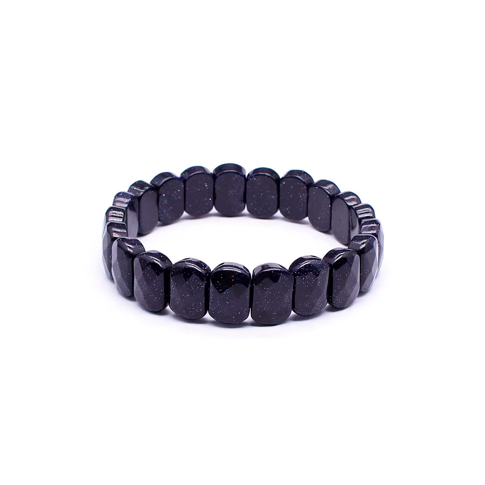 Женский браслет "Каирская ночь" из искусственно выращенного камня авантюрин (звездный камень), фиолетового цвета станет превосходным аксессуаром для повседневного образа. Камни этой модели имеют форму плитки предлагая более тонкий и вытянутый профиль. Огранка кушон или подушка прекрасно улавливает свет, придавая камню более яркие оттенки, которые бросаются в глаза,  делая это украшение более изящным и более статусным по сравнению с каменными браслетами без огранки.
