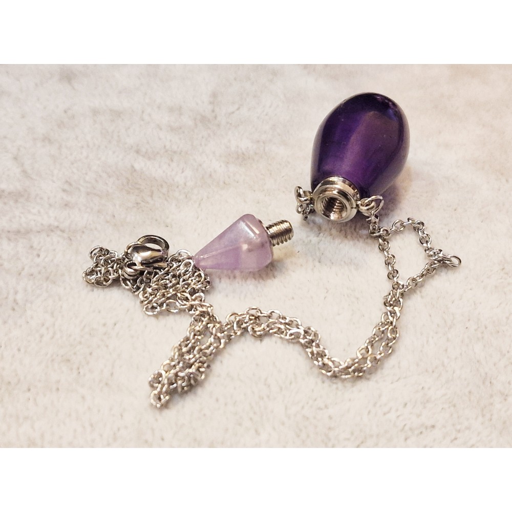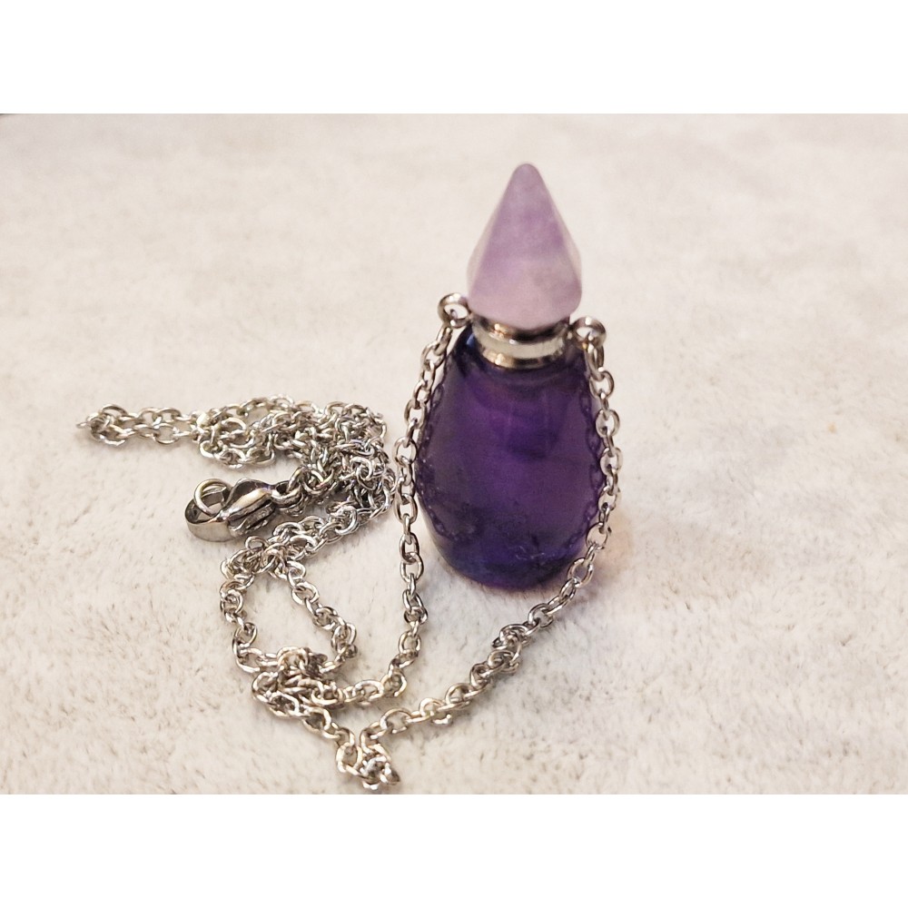Парфюмерный флакон-кулон успеха из натурального камня аметист фиолетового оттенка. Отличный вариант аксессуара для повседневного образа.